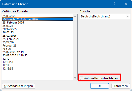 Office: aktuelles Datum im Schnellbaustein