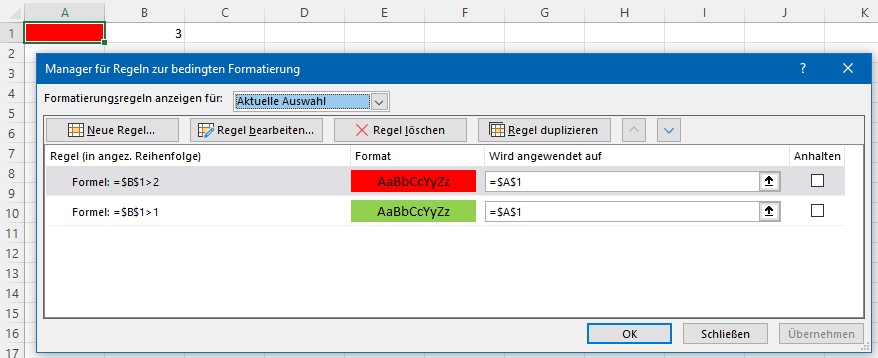 Bedingte Formatierung mit Zelle in der sich Ergebnis einer Formel befindet