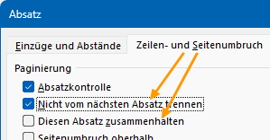in Microsoft Word HilfeBereich mit VBA zusammenhalten: Ich schreibe aus Access mit VBA Anschriften in ein Worddokument. Jede Anschrift soll zusammengehalten werdem, damit am Seitenende keine Anschrift getrennt wird. Wie muss ich vorgehen um eine... -