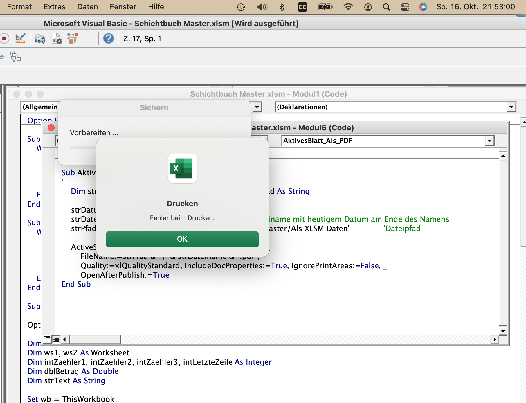 Office: (Office 2016 Mac) Excel Blatt als PDF speichern mit VBA