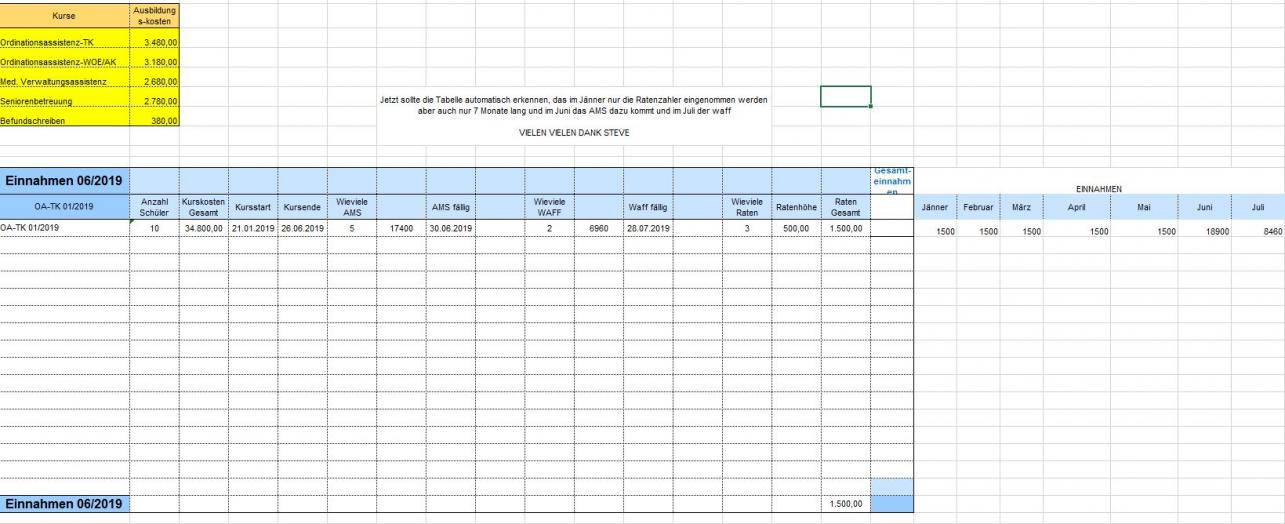 Helfe beim Thema variable Monatseinnahmen rechnen in Microsoft Excel Hilfe um das Problem gemeinsam zu lösen; Liebe Forumer, ich bräuchte eure Hilfe. Ich möchte eine Tabelle erstellen, die mir unsere monatlichen Einnahmen automatisch berechnet. Wir... Dieses Thema im Forum "Microsoft Excel Hilfe" wurde erstellt von Patrick0104, 18. September 2019.