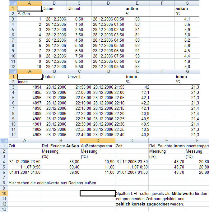 Office: Werte zu versch.Zeiten aus 2Registern als Mittelwerte ordnen