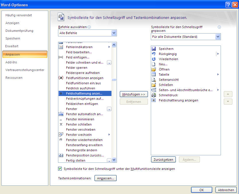 Office: WORD 2007 Probleme mit Schriftfeldern